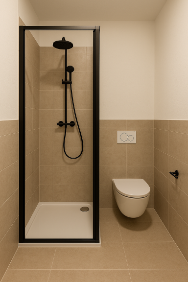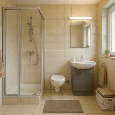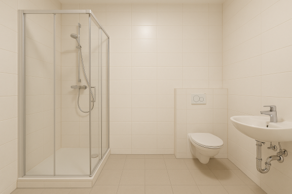 Die 75 qm helle Wohnung überzeugt durch hochwertige Fliesenböden, eine gepflegte Küchenzeile in hellen Farben und ein großzügiges Bad mit Dusche, Waschbecken und WC. Ideal für Singles oder Paare, die Wert auf Komfort und ruhige Lage legen.