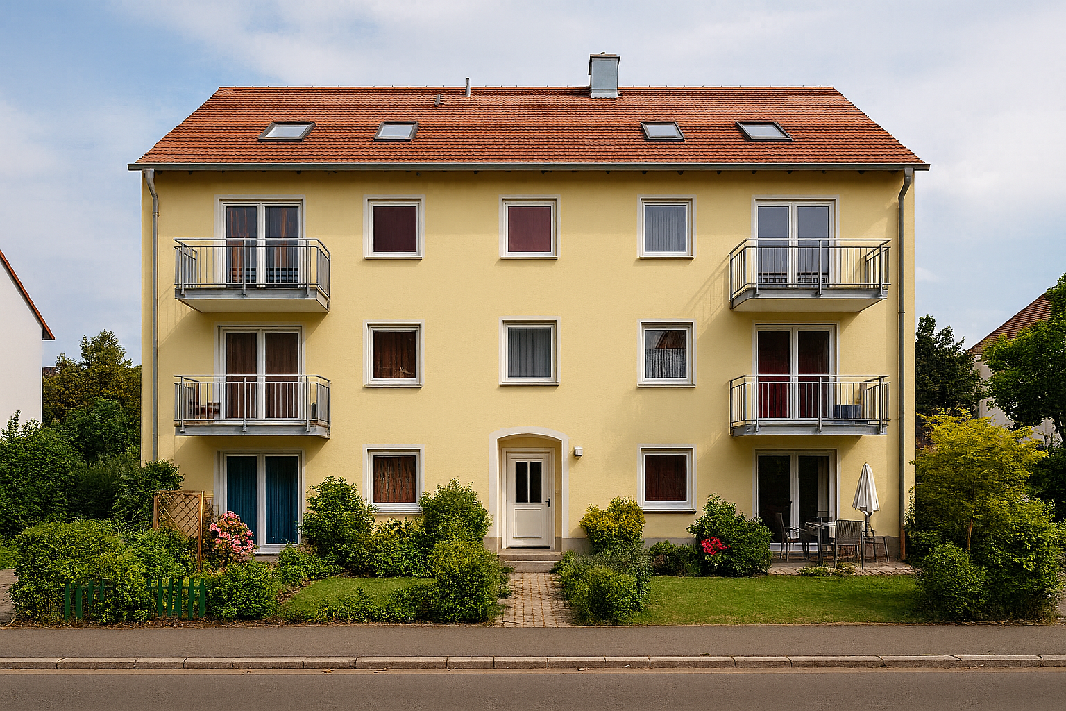 Dieses gepflegte Mehrfamilienhaus im Nürnberger Land umfasst sechs vollständig vermietete 3-Zimmer-Wohnungen mit jeweils ca. 90 m² Wohnfläche. Die Erdgeschosswohnungen verfügen über Terrassen mit kleinen Privatgärten, die oberen Einheiten über Balkone. Das Gebäude präsentiert sich in einem sehr guten Zustand, mit hellen Räumen, funktionalen Grundrissen und einem gemeinschaftlichen Fahrradkeller. Eine solide Kapitalanlage in gefragter Wohnlage mit stabiler Mieterstruktur und nachhaltigem Ertragspotenzial.